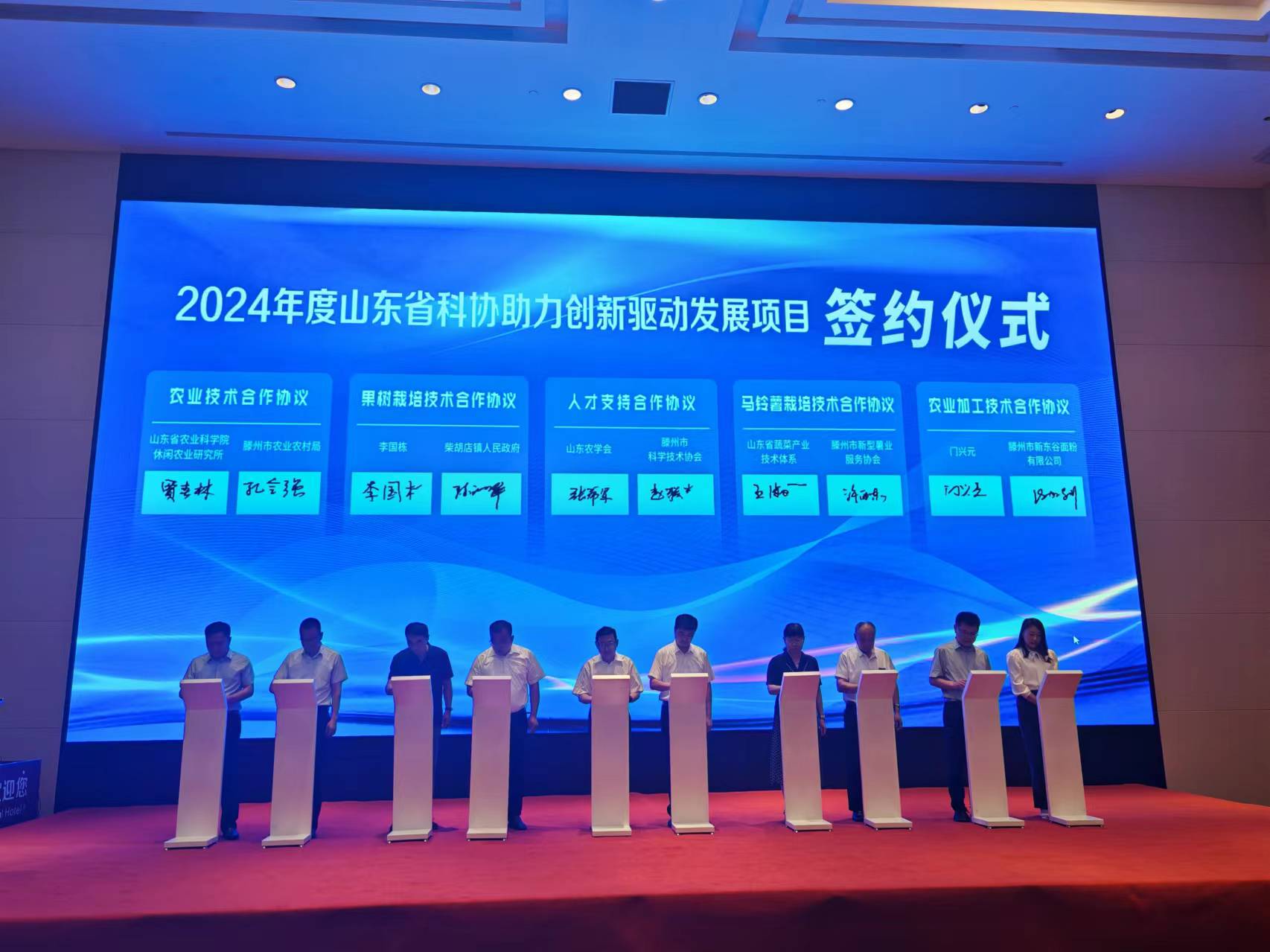 山东农学会秘书长张希军集中发布推介创驱农业科技成果70项,与滕州市科协、滕州市农业农村局、滕州市新东谷面粉公司等5家单位签署人才或技术合作协议。