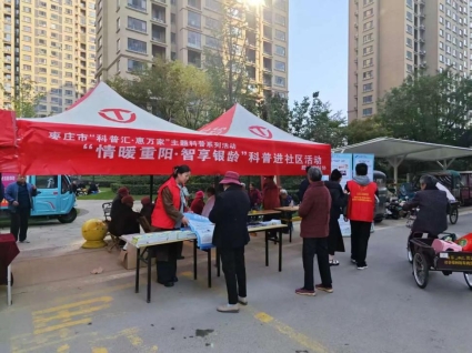 在重阳佳节暨全国老科技工作者日来临之际,按照枣庄市“科普汇·惠万家”主题科普系列活动安排,10月,枣庄市科协组织各级科协开展了“一月一主题”之“银龄科普”宣传活动,将科学知识、健康服务与暖心关怀送到老年人家门口,大力弘扬中华民族尊老敬老爱老助老的传统美德,在全社会营造了讲科学、爱科学、用科学的良好氛围。