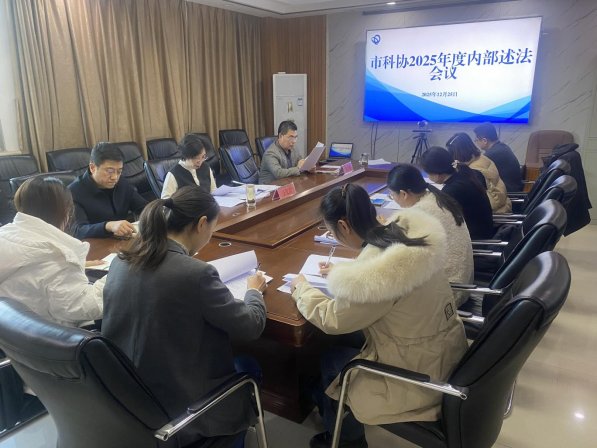 12月25日,枣庄市科协召开2025年度内部述法会议。会议由市科协党组书记、主席王忆青主持。市科协机关全体人员和市科技馆负责人参加。