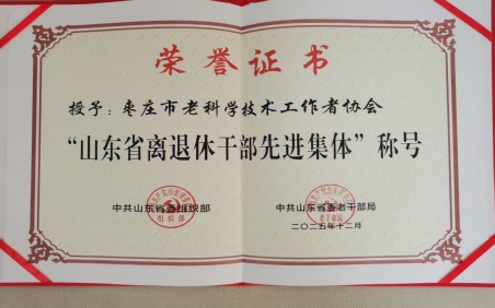 近日,山东省离退休干部和老干部工作“双先”表彰大会在济南召开。枣庄市老科协荣获“山东省离退休干部先进集体”荣誉称号。
