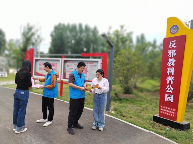 创新宣传方式,增强防邪能力。以线上线下相结合的宣传方式,线上充分利用网格微信群、LED显示屏等方式,进行科普邪教危害。线下组织志愿者开展“青春无邪 守护善城 对邪教说不”等多场宣传宣讲活动,建设东七、大同反邪教科普公园两处,反邪教关爱工作站一处,常态化对居民开放。