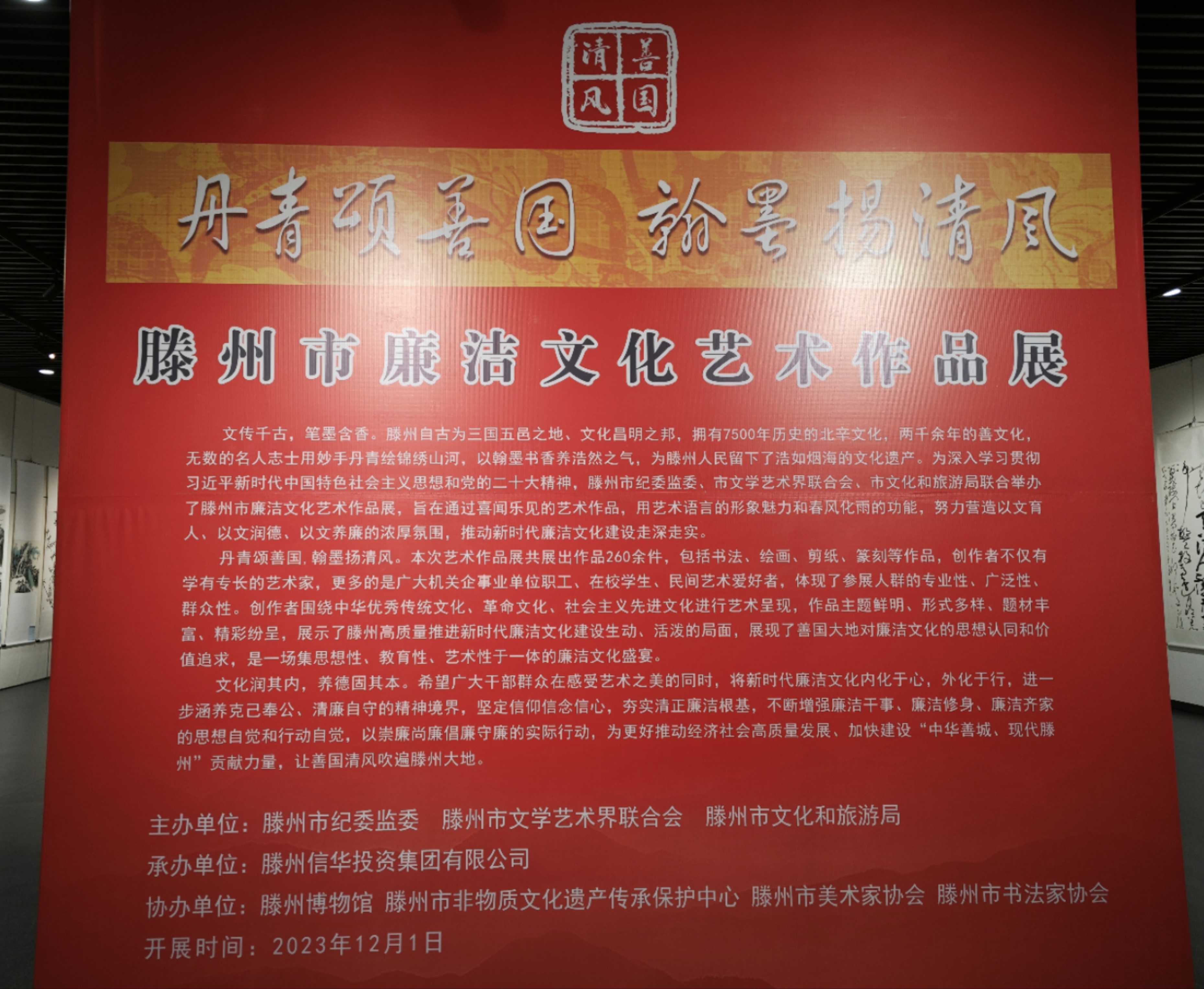 本次艺术作品展共展出作品260余件,包括书法、绘画、剪纸、篆刻等作品,作品围绕我国优秀文化、革命文化、社会主义先进文化进行艺术呈现,展示了滕州高质量推进廉洁文化建设生动、活泼的局面。