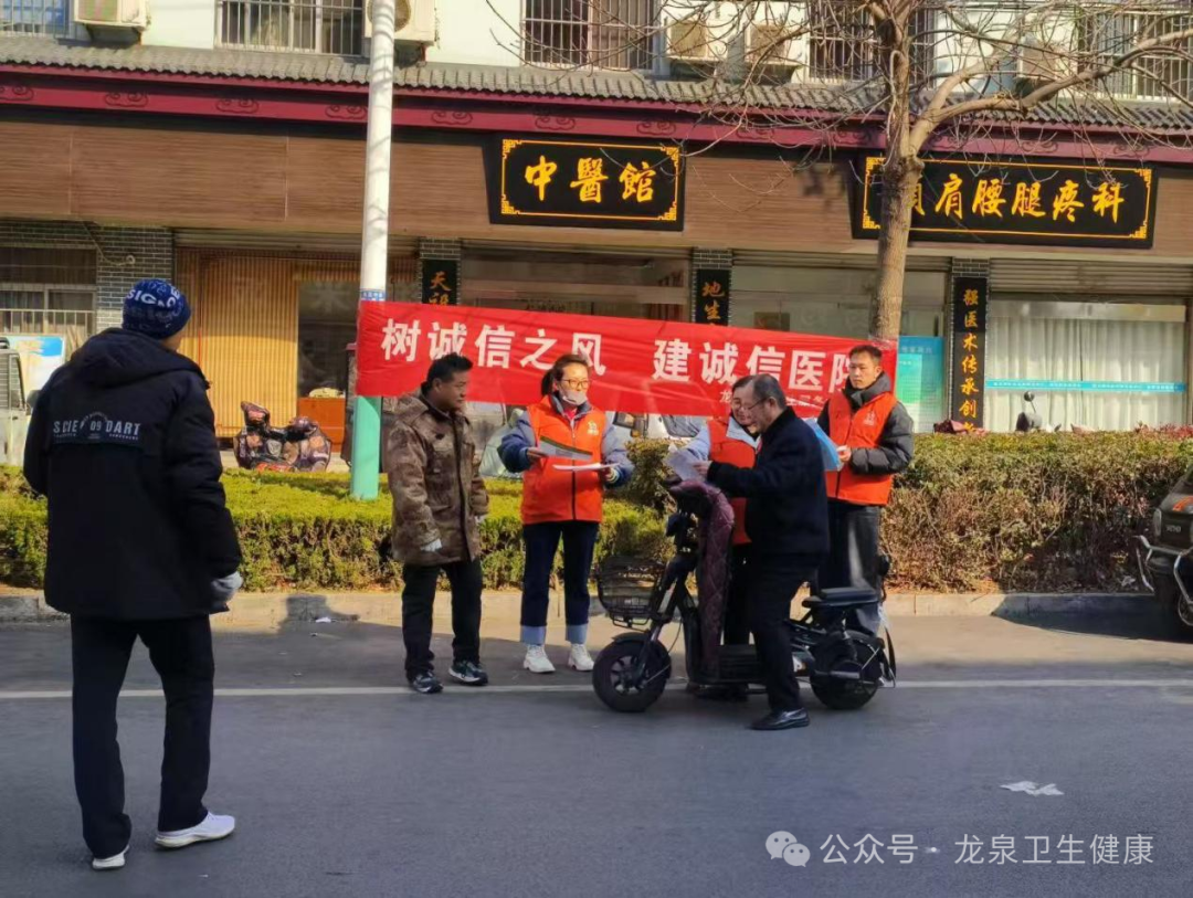 龙泉社区卫生服务中心,一场意义非凡的“树诚信之风,建诚信医院”信用宣传活动正如火如荼地展开。当您踏入医院,便能看到志愿者们忙碌的身影,他们拉着醒目的条幅,热情地发放传单,致力于将诚信理念传递给每一个人。