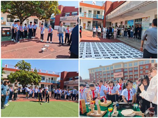 开幕式结束后,与会人员共同参与科技游园环节。校园科技馆、科学实验及无人机展演、机器人等互动体验区吸引同学们踊跃参与,大家在实践中感受科技魅力。