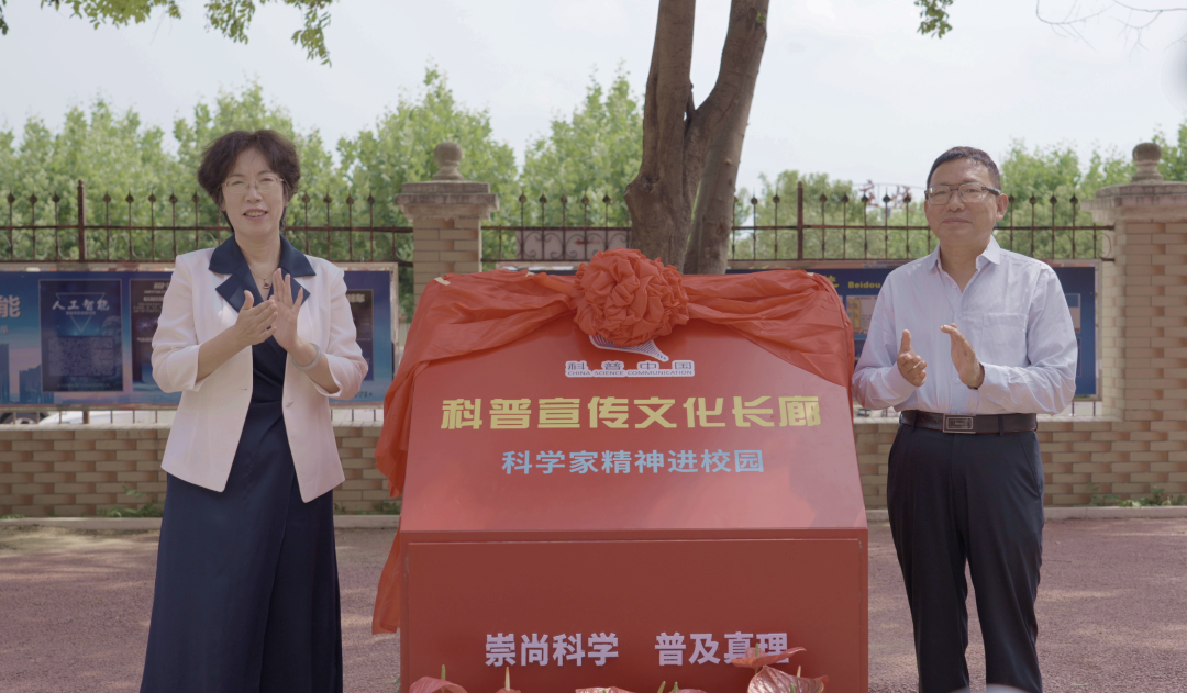 王忆青与张希军共同为长廊揭牌。该长廊以“以科学家精神进校园,让科学精神照亮学生课堂”为主题,通过图文展板、事迹介绍等形式,既展现近代著名科学家的奋斗历程与科研成就,也呈现历届国家科技大奖获奖人员及其先进事迹,生动诠释科学家精神的深刻内涵。
