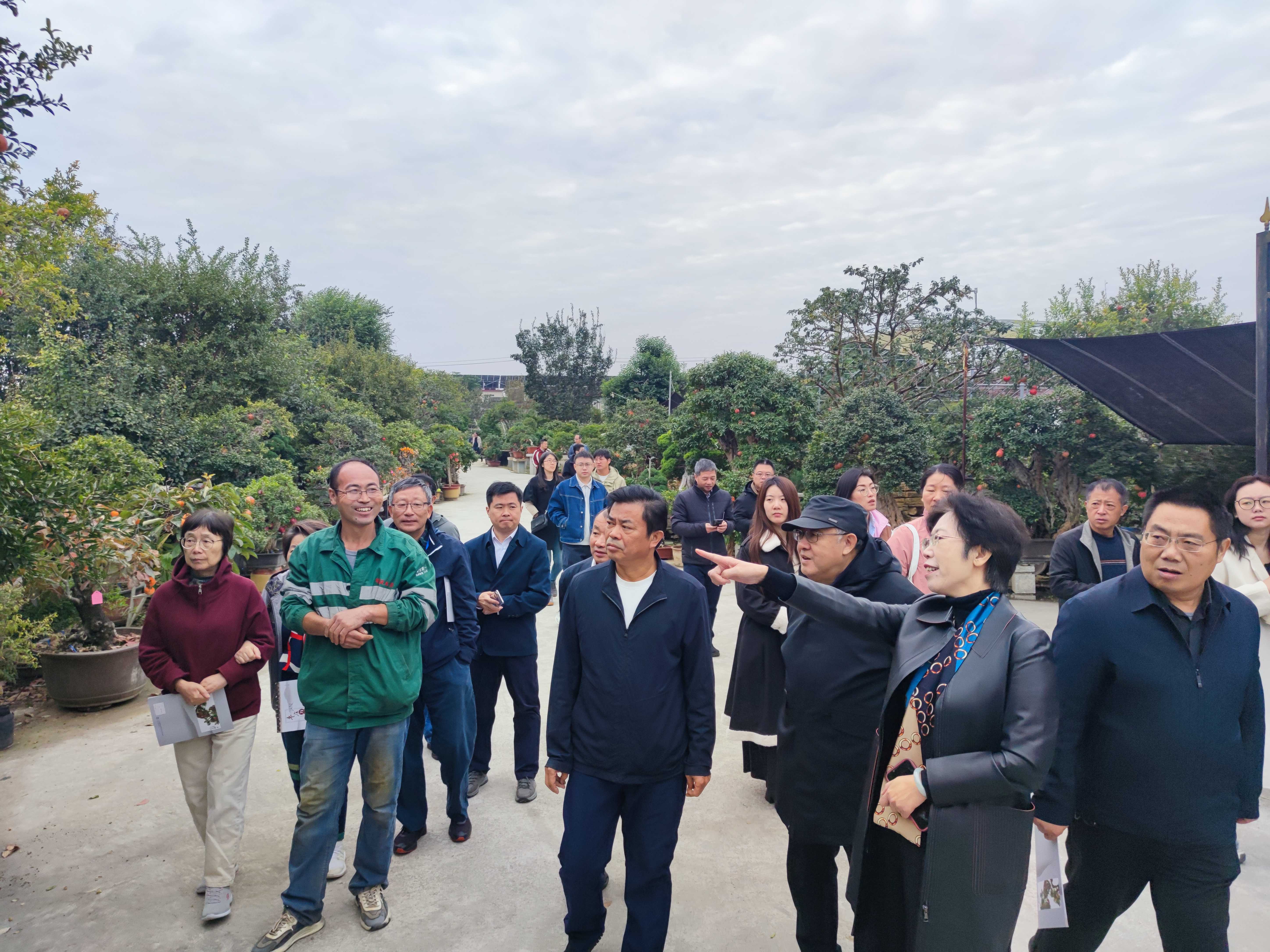 在枣庄万景石榴盆景园,考察团观赏造型各异的石榴盆景作品,详细询问盆景培育周期、市场销售等情况。考察团称赞峄城将石榴种植与园艺艺术结合、培育小微盆景产业化,开辟了特色农业增值新路径。