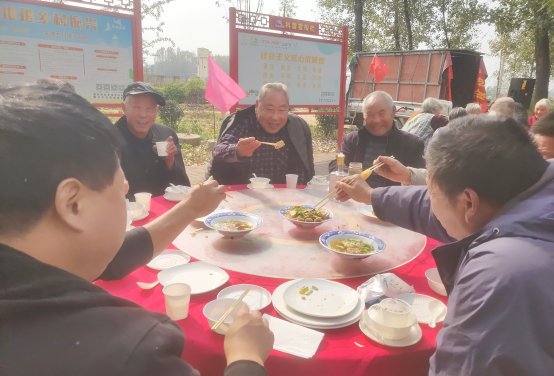 活动尾声,工作人员为老人们端上热气腾腾的“十大碗” 爱心餐。精心烹制的菜肴荤素搭配、营养均衡,承载着对老年人的浓浓敬意与关怀。老人们围坐在一起共享美食,畅谈生活变化,现场充满欢声笑语,暖意十足。