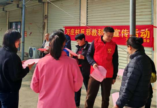 为增强村民反邪教意识,营造健康和谐的社会环境,近日,万庄村在集市开展提高科学素养抵制歪理邪说科普宣传活动。活动面向赶集群众,特别是老年人,通过现场讲解邪教的定义、危害、识别方法及应对措施,提高村民的防范意识。