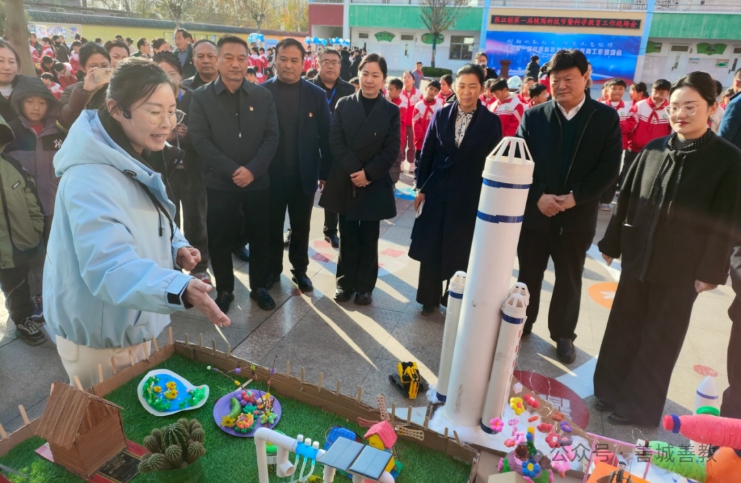 与会领导和参加活动的联区、学校负责同志一块观看了科技展示现场。尹建伟充分肯定了张汪科学教育的实践成效,他强调,要持续强化科技教育,不断推动课程资源融合与教学方式创新,打造具有特色的科技教育品牌,培养具有科技创新精神的学生。