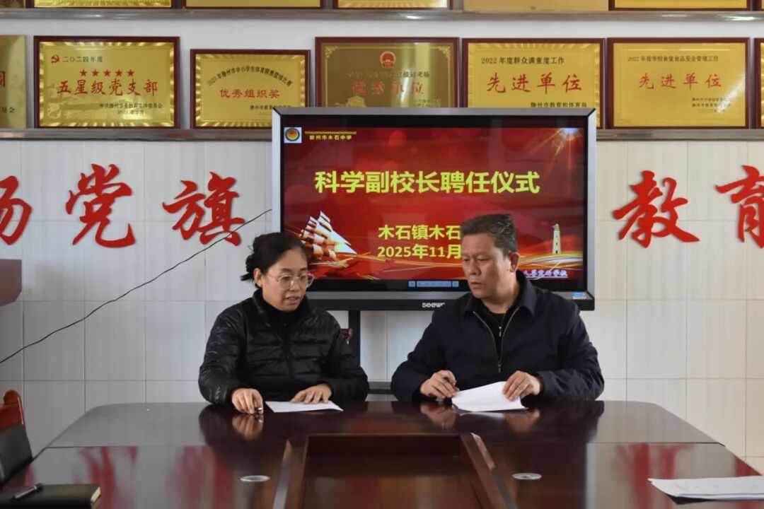 11月19日,木石中学隆重举行科学副校长聘任仪式,正式聘请木石科学协会会长顾梅女士担任学校科学副校长。此次聘任旨在进一步加强学校科学教育体系建设,提升学生的科学素养与创新能力,是学校推动素质教育、对接科技前沿的重要举措。聘任仪式在校党员活动室举行,学校主要领导和学区李成军主任参加了仪式。