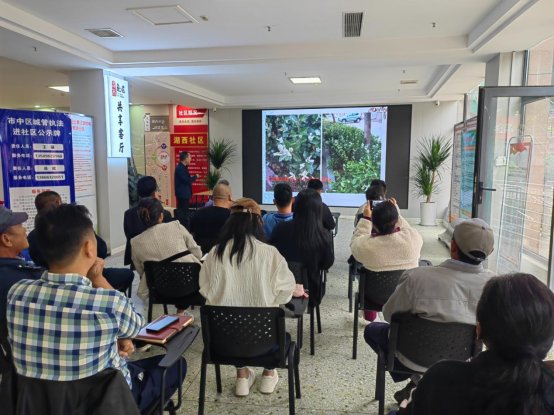 活动现场,区园林服务中心园林师王传亮运用通俗易懂的语言,通过专题讲座、现场演示、互动问答等多种形式,将复杂的知识技术化繁为简,细致讲述了多种植物的不同生长习性和养护需求,从浇水施肥、修剪整形到病虫害防治,全面指导如何科学栽种和养护植物,传授绿化“秘籍”,通过科学搭配来营造出层次丰富、四季有景的绿化景观。