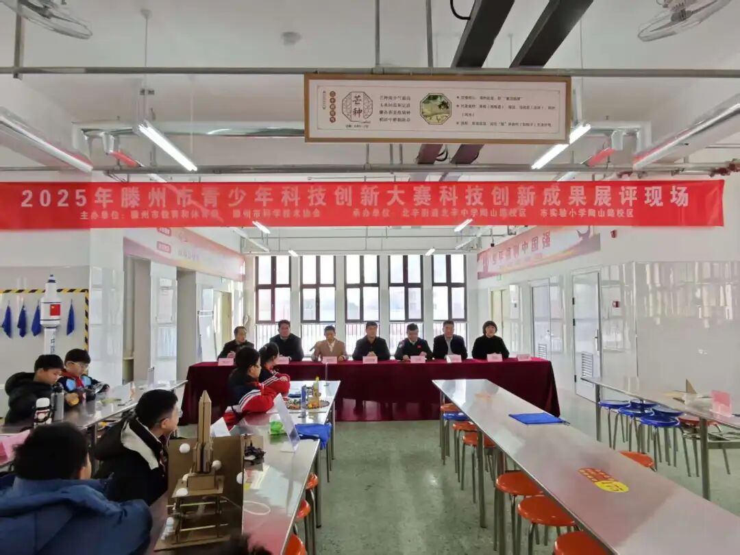 12月9日,由滕州市科学技术协会与滕州市教育和体育局联合主办的2025年滕州市青少年科技创新大赛现场展评活动,在北辛中学陶山路校区、实验小学陶山路校区顺利举行。市科协党组书记、主席赵联喜,市教育和体育局党组成员、市竞技体育学校校长王伟出席活动。市教育和体育局电教信息科科长宋萍主持开幕式。
