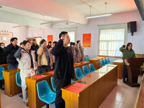 活动现场氛围庄严热烈,机关同志精神抖擞地列队肃立。启动仪式在雄壮激昂的《义勇军进行曲》中拉开帷幕,激昂的旋律回荡在现场,激发了全体人员的爱国情怀与责任担当。国歌毕,街道党工委副书记张捷手持宪法文本,面向全体同志庄严领誓,“我宣誓:忠于中华人民共和国宪法,维护宪法权威,履行法定职责……”全体宣誓人员高举右拳,神情肃穆、声音铿锵,郑重作出忠于宪法、忠于祖国、忠于人民的庄严承诺。
