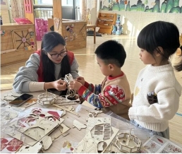 活动现场,工作人员为孩子们分发了木质板件、水纹纸、LED灯串等制作材料,并讲解了转花灯的结构与组装技巧。随后,在工作人员的指导下,孩子们认真进行裁剪、粘贴、拼接和固定,将零散部件一步步组合成色彩鲜艳、造型生动的马年转花灯。当灯体轻轻转动,光影流转、图案变幻,孩子们手持作品兴奋展示,脸上洋溢着满满的成就感与幸福感。