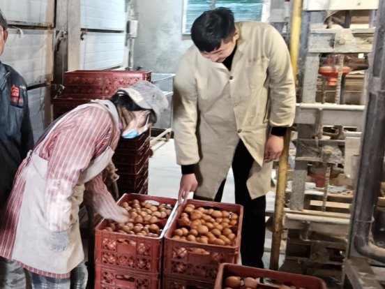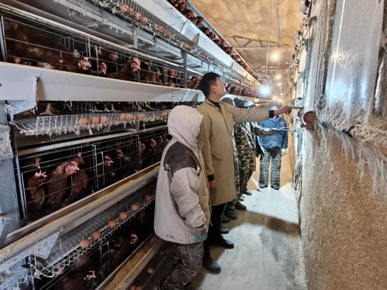 来到鸡舍给工人们详细讲解鸡舍温度、湿度、通风、光照、及养殖密度等对蛋鸡产蛋率的影响,在饲料投喂量与饮水量上关注蛋鸡的产蛋率,并且用大量数据提供技术指导,并嘱咐工人要始终保持细心、耐心科学的管理鸡舍。