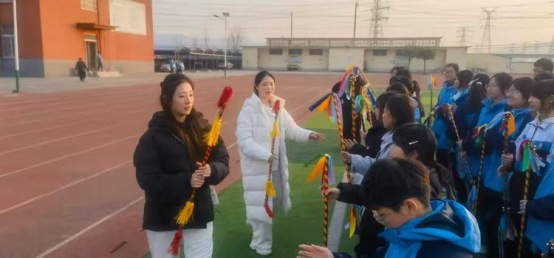 课堂上,志愿者以“理论+实践”的方式,从握棍姿势、基础节奏入手,通过分解动作示范、一对一指导,帮助学生逐步掌握花棍舞基本技巧。教学中注重互动引导,鼓励学生大胆尝试,操场上氛围热烈,学生参与热情高涨。学校高度重视此次活动,组织无课教师到场听课学习,记录教学方法并与志愿者交流心得,为后续将花棍舞融入校园体育课程积累经验。
