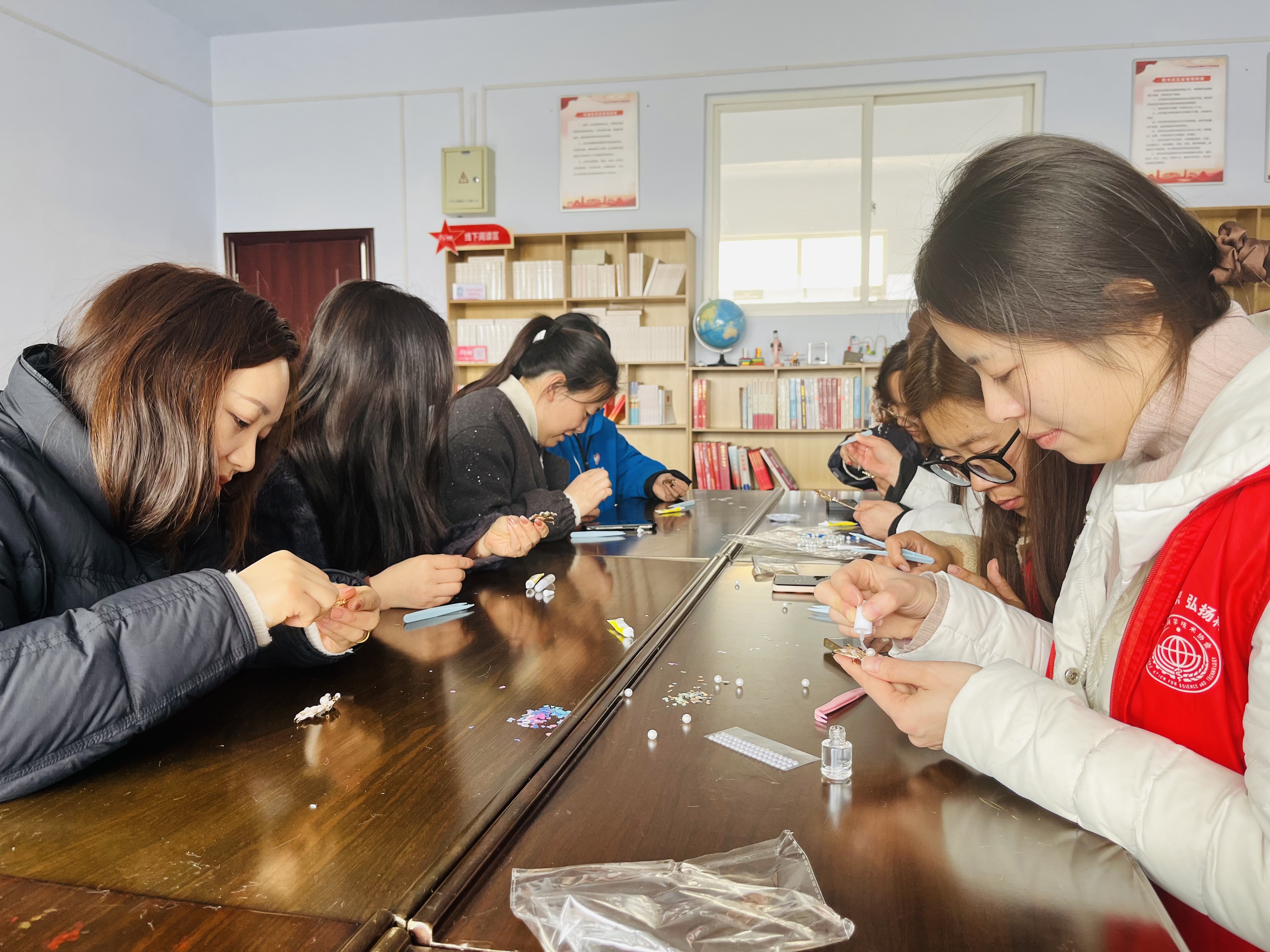 活动现场大家还体验了非遗手作螺钿胸针,从选料构思、粘胶拼接,到细节打磨、封层定型,每一个步骤都认真细致。大家一边动手创作,一边交流心得,在沉浸式的手工体验中舒缓身心、收获乐趣。一枚枚精致独特的胸针陆续成型,现场洋溢着浓厚的节日氛围。