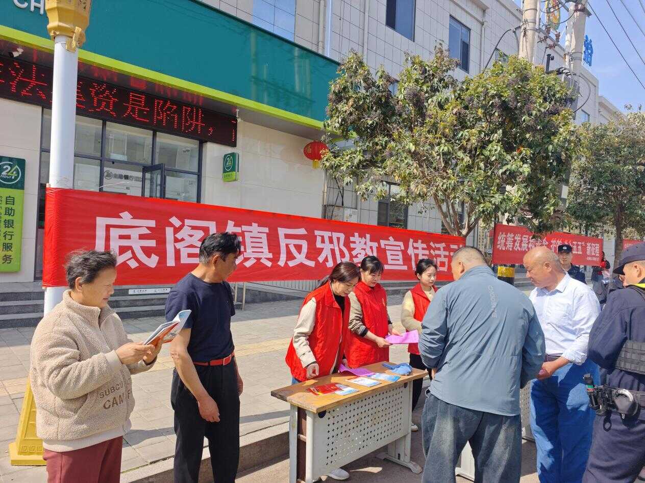 为深刻揭露邪教反科学、反人类、反社会的本质,切实筑牢辖区防范抵御邪教的思想防线和安全屏障,4月15日,峄城区底阁镇科协联合综治办、妇联、派出所等部门在镇综合大厅门前联合开展反邪教集中宣传教育活动,旨在提升全民识邪、防邪、拒邪能力,维护农村社会大局和谐稳定。